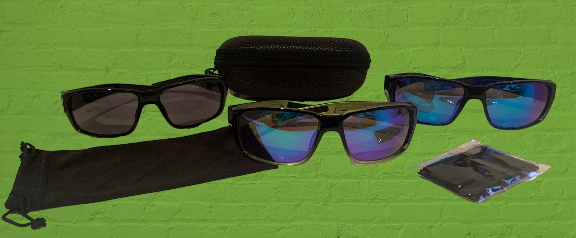 Polarized lenses, Hard Case, Soft case and cleaning cloth included.